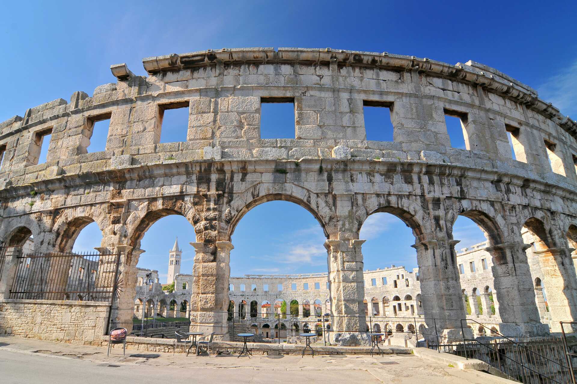 Pula beskrives normalt som en miniversion af Rom – med brede promenader, smalle gyder og endda sit eget amfiteater. Verdens sjettestørste amfiteater, der i folkemunde er kendt som "Arenaen", er meget velbevaret og bruges i dag blandt andet til koncerter, filmfestivaler og lignende aktiviteter. Udover amfiteatret har Pula også et af verdens bedst bevarede romerske templer, Augustus-templet, en triumfbue og katedralen for den hellige jomfru Maria.